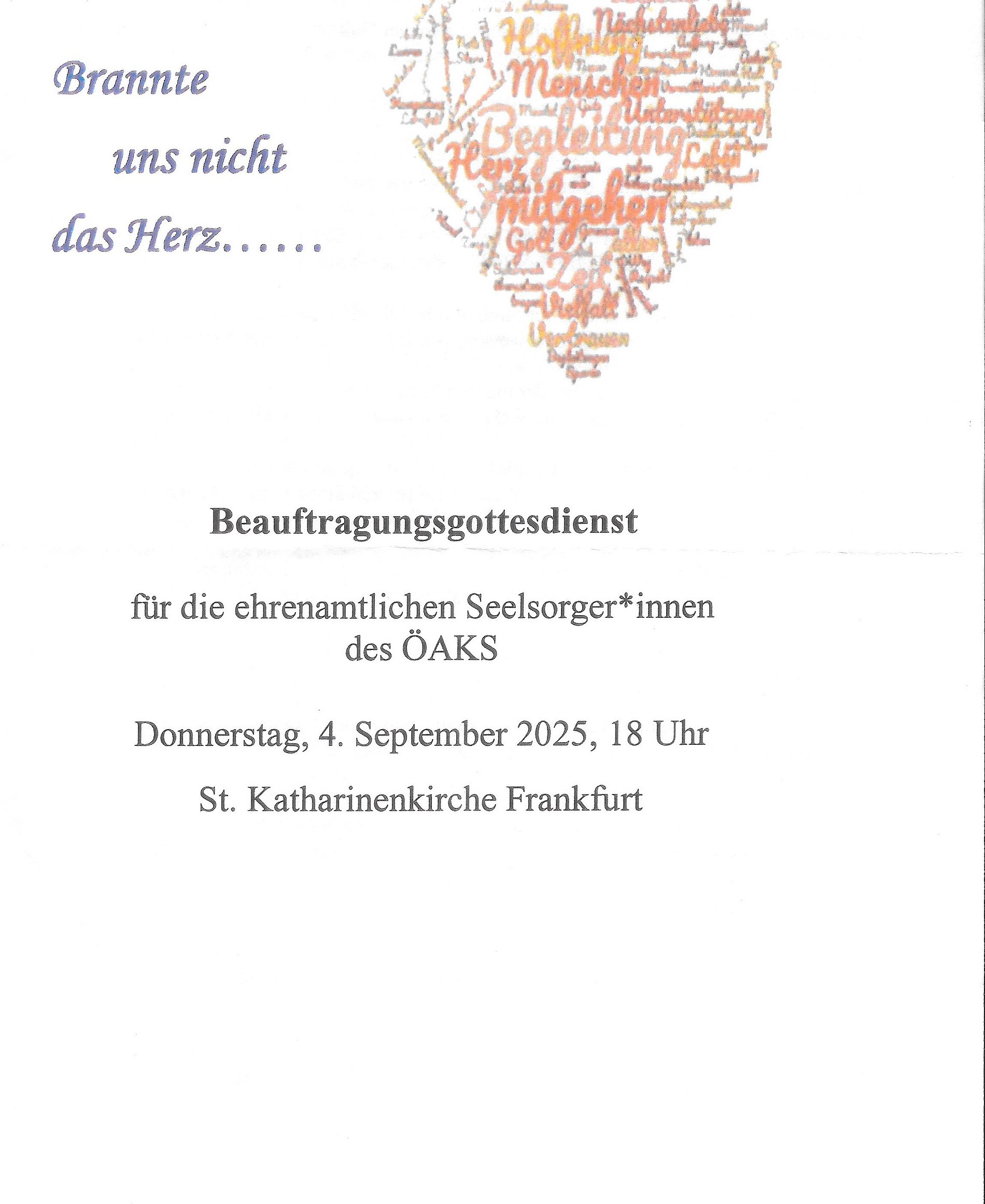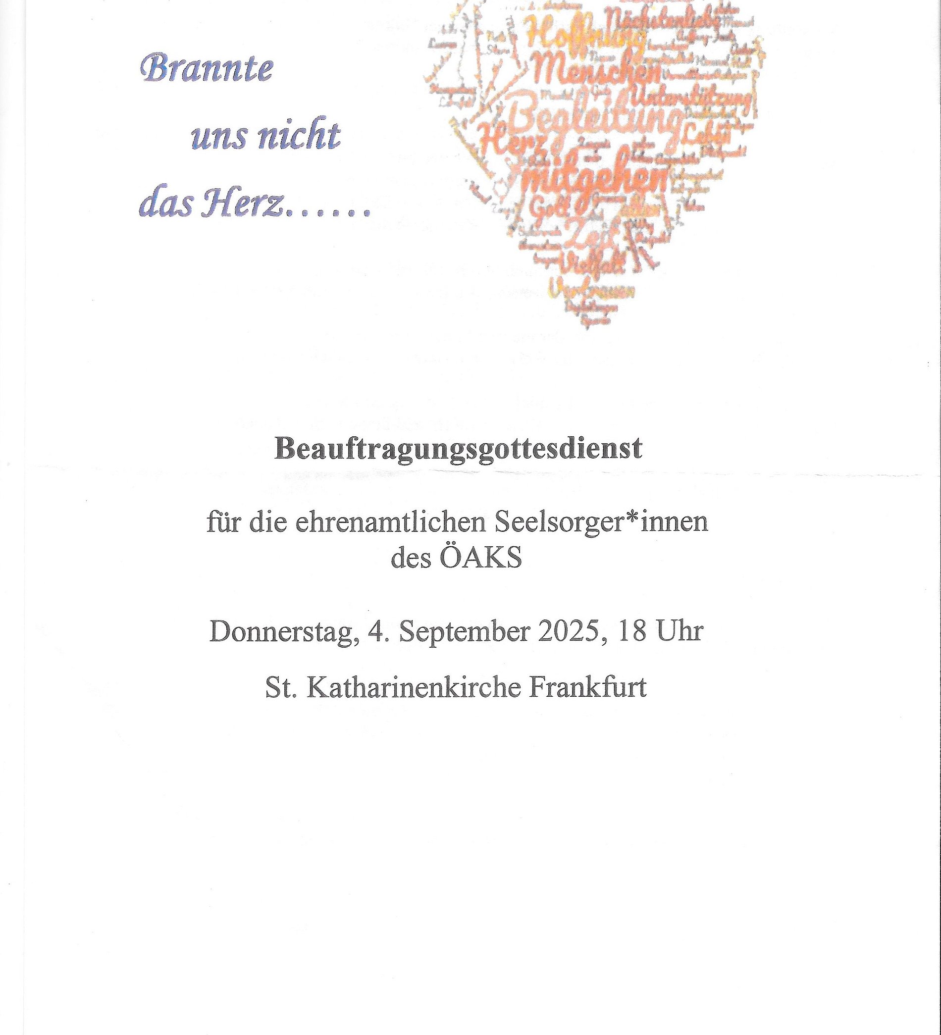 Der nächste Beauftragungs Gottedienst: Donnerstag, 3. September 2026, 18.00-20.00 Uhr: Campuskirche der Hochschule St. Georgen.